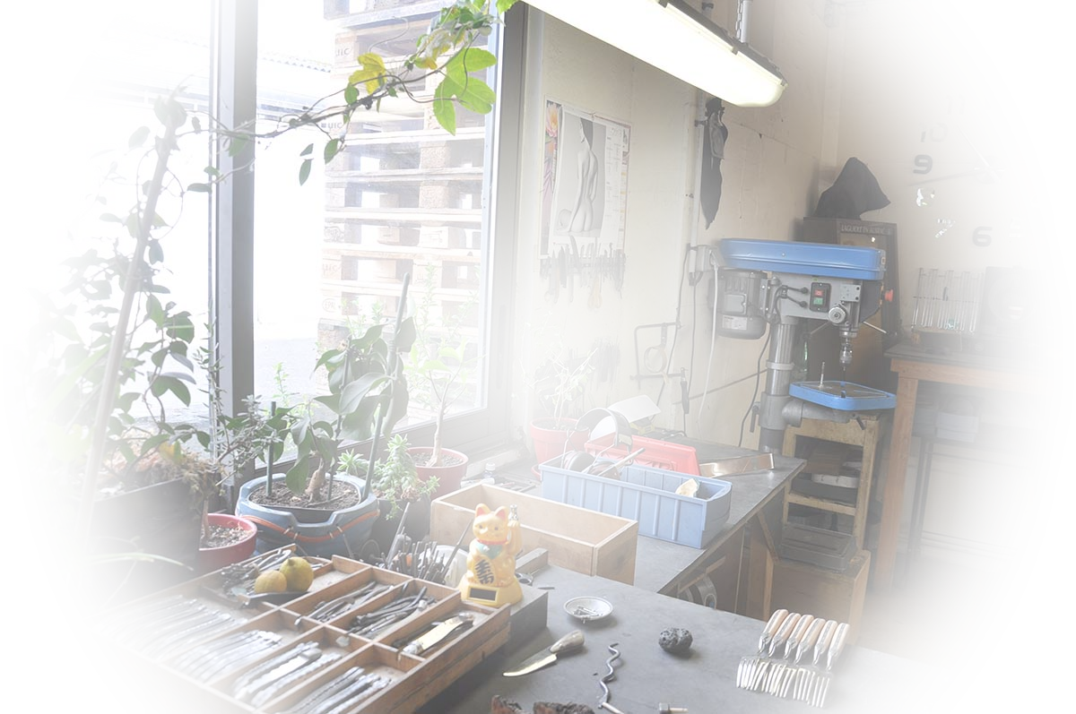 Hier herrscht Stille. Pflanzen säumen den Raum, Licht fällt sanft auf Werkbank und Werkzeuge. François hat sich hier sein eigenes kleines Reich geschaffen – einen Ort der Konzentration, der Geduld und der Inspiration. Fernab vom Lärm widmet er sich in aller Ruhe jedem einzelnen Arbeitsschritt, mit sicherer Hand und geschultem Blick.