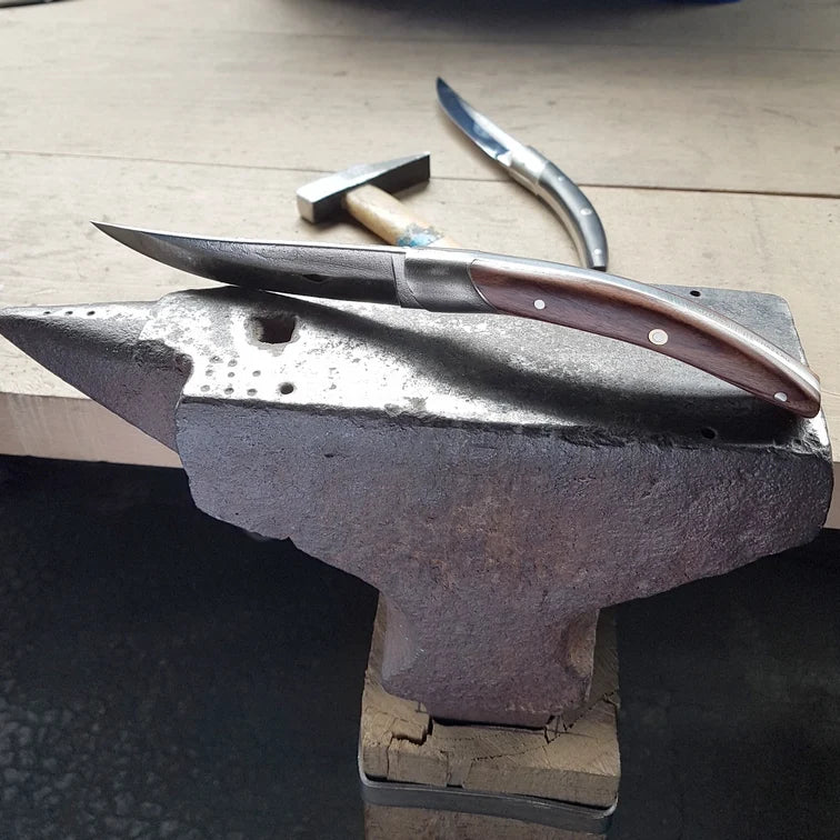 Jedes Messer von Goyon-Chazeau ist „Made in France" - vom Rohstahl über die Schmiedung bis zur Endmontage und Kontrolle. Die Manufaktur hat das staatliche EPV-Label (Entreprise du Patrimoine Vivant) erhalten, eine Anerkennung für handwerkliches Können und kulturelle Bedeutung im französischen Handwerk. Besonders bemerkenswert ist die Fertigung von monocoque-Griffen und komplett geschmiedeten Teilen, eine seltene und anspruchsvolle Technik der Messerherstellung.
