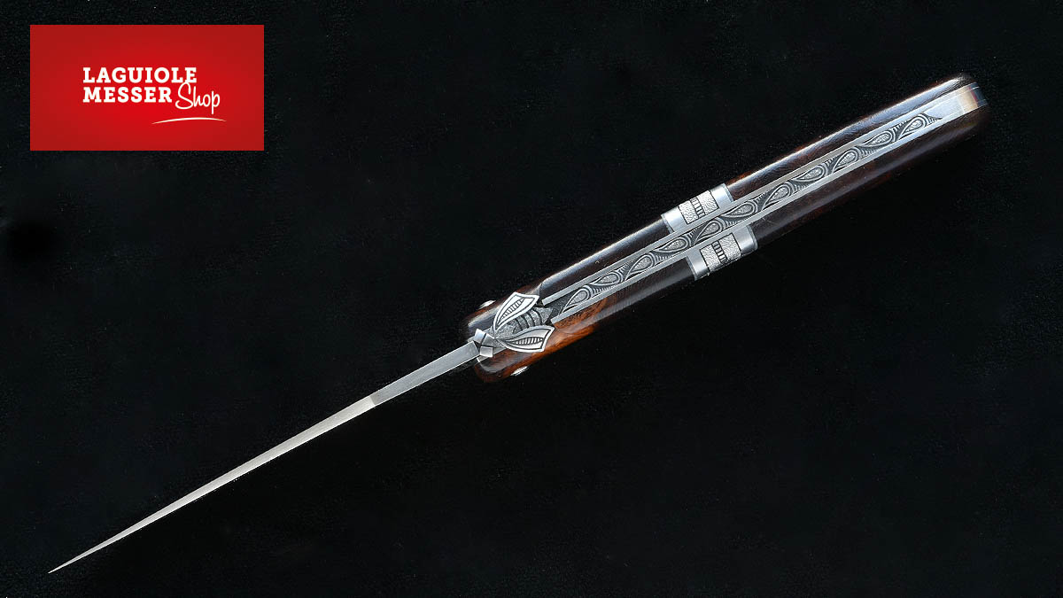 Dieses Meistermesser gehört zu den besonders kunstvollen Einzelstücken von Laguiole en Aubrac. Gefertigt von einem einzigen Maître Coutelier, vereint es edle Materialien mit aussergewöhnlicher Handwerkskunst.